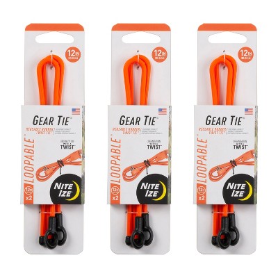Nite Ize Gear Tie Loopable Twist Tie - Reusable & Flexible - Bendable Cable Ties for Gear & Cords - for Secure Fastening - 12", Bright Orange (3 Pack)