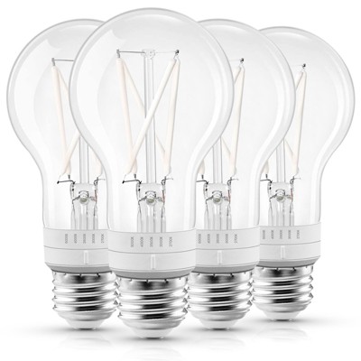 Luxrite A19 Vintage LED Light Bulb 60 Watt Equivalent, 5CCT Dimmable, 800 Lumens, Edison Bulb 7W, UL Listed, E26 Medium Base 4 Pack