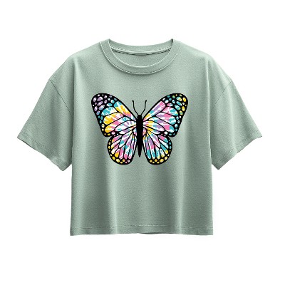 Girls' - Instant Message - Tie Dye Butterfly Short Sleeve Boxy Graphic T-Shirt