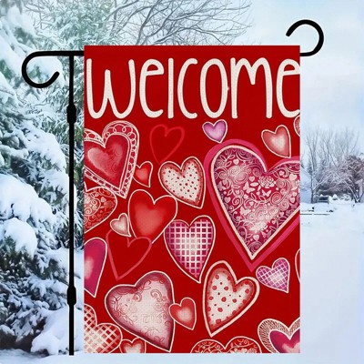 Valentines Day Love Garden Flag Single Sided Burlap Love Heart Buffalo Plaid Anniversary Small Yard Flag for Outside Decoration 12x18in