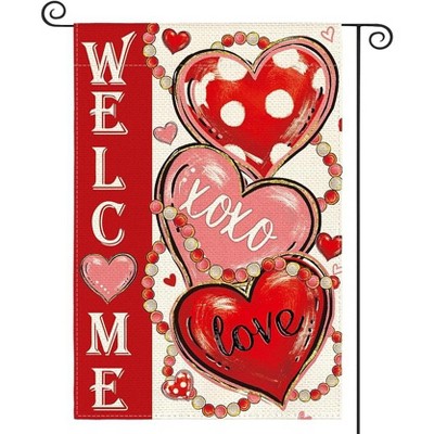 Lomsoe Valentines Day Welcome Garden Flag Love Hearts Welcome Yard Flag Anniversary Wedding Party Flag Valentines Gift Decor Single Side 12x18Inch