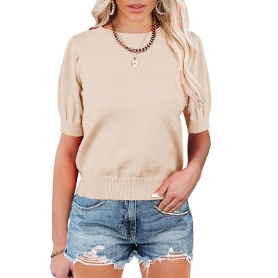 Imily Bela Women's Summer Pleated Button Short-Sleeve T-Shirt, Solid Color V-Neck Casual Top