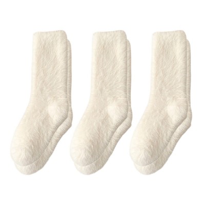 Anna-Kaci 3-Pair Plush Fuzzy Socks with Soft Fluffy Texture and Mid-Calf Design for Warmth and Comfort