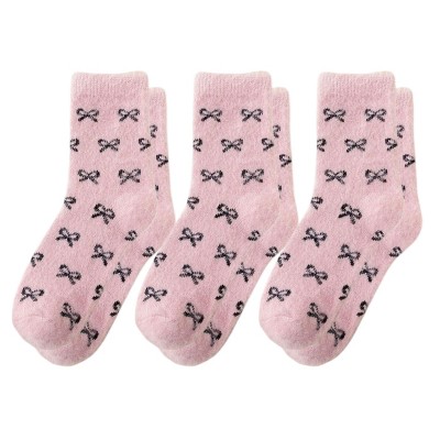 Anna-Kaci Women's 3-Pack Fuzzy Crew Socks with Allover Bow Pattern Soft Cozy Knit Winter Sock Set