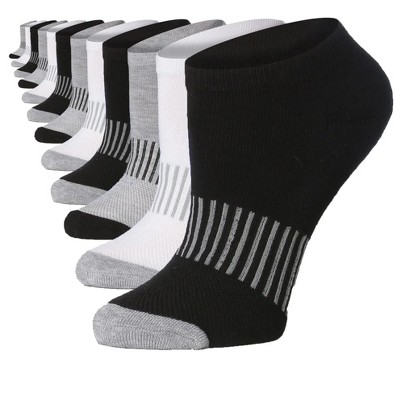 Black White & Grey Contrasting Stripe Toe No Show Socks - 12 Pairs