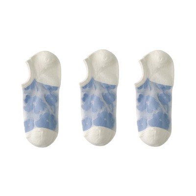 Anna-Kaci Women's 3-Pair Sheer No Show Socks Floral Pattern Lightweight Soft Knit Comfortable Everyday Sock Set - Blue