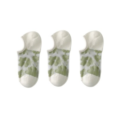 Anna-Kaci Women's 3-Pair Sheer No Show Socks Floral Pattern Lightweight Soft Knit Comfortable Everyday Sock Set - Green