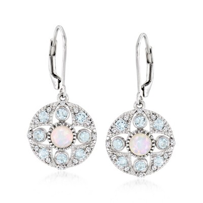 Ross-Simons Opal and 1.70 ct. t.w. Sky Blue Topaz Drop Earrings With .20 ct. t.w. White Zircons in Sterling Silver