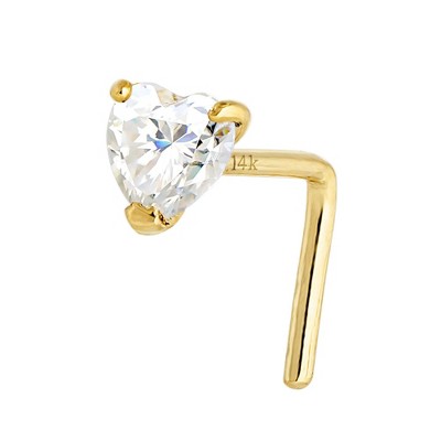Jewelry Avalanche 22G 14K Gold Heart-shape Moissanite L-Shape Nose Stud
