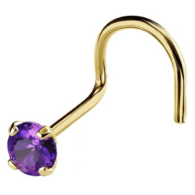 Jewelry Avalanche 22G 14K Gold Nose Screw Nose Stud with Amethyst Gemstone