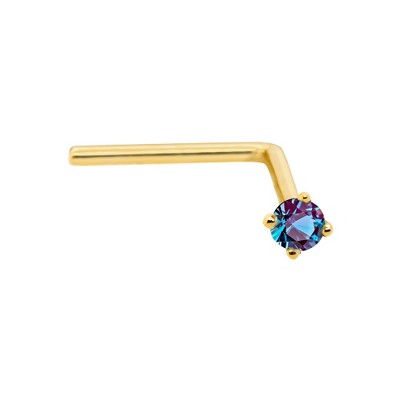 Jewelry Avalanche 22G 14K Gold L-shape Nose Stud with Blue Diamond