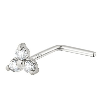 Jewelry Avalanche 3-stone 0.03ctw Diamond L-shape Nose Stud 22G Solid 14K Gold