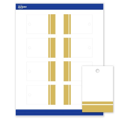 Avery Printable Rectangle Tags, Gold-Dipped Edge, 2" x 3", Matte White Rectangle Tags, Laser/Inkjet, 80ct, Great for Product Tags