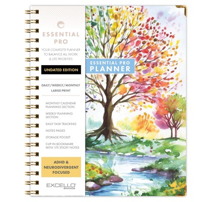 ESSENTIAL PRO Undated Daily, Weekly/Monthly Planner,Tabs,Notes Pages,Storage Pocket,Bookmark (Tree Seasons)