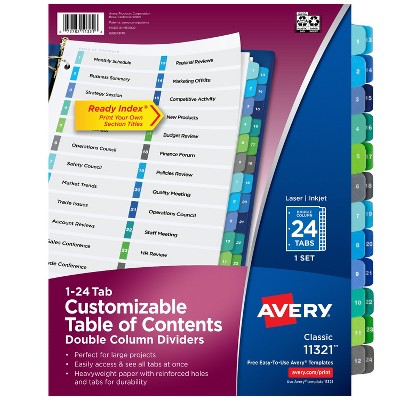 Avery Ready Index 24 Tab Double Column Binder Dividers, Customizable Table of Contents, Multicolor Tabs, 1 Set (11321)
