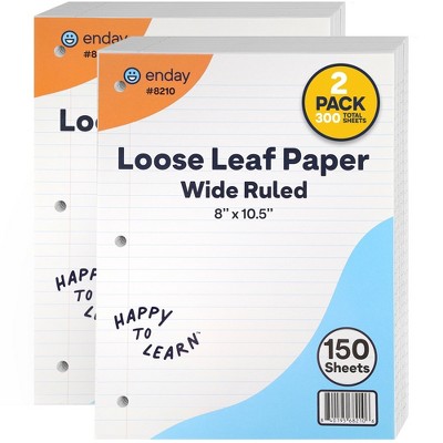 Loose Leaf Paper 8" x 10.5" Filler Paper White, 3 Hole Punched Binder Paper for 3 Ring Binders, 150 Sheets Per Pack - Enday