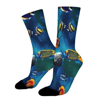 Sea Tropical Fish Women Printed Crew Socks Funny Funky Socks Soft Polyester Novelty Gifts for Artists Men