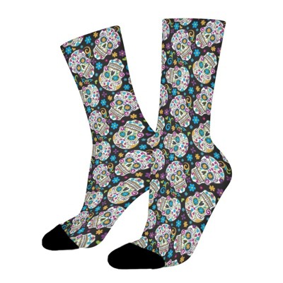 Sugar Skulls Women Printed Crew Socks Funny Funky Socks Soft Polyester Novelty Gifts for Artists Men