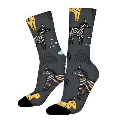Colorful Zebra Women Printed Crew Socks Funny Funky Socks Soft Polyester Novelty Gifts for Artists Men