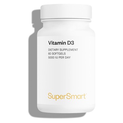 SuperSmart Vitamin D3 5000 IU per Day (125mcg) - High Potency & Bioavailability - with Sunflower Oil | Non-GMO & Gluten Free - 60 Softgels