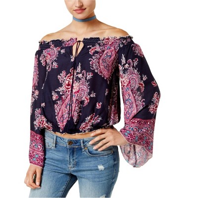I.N.C International Concepts Womens Flower Floral Cold Shoulder Blouse