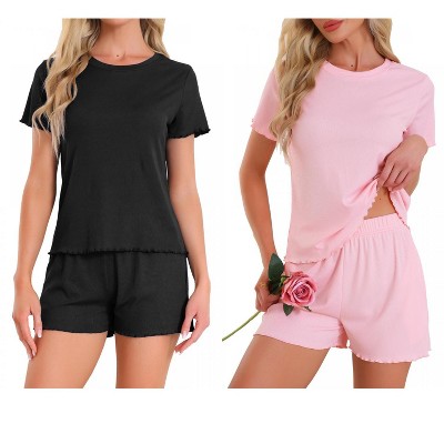 Anna-Kaci Lounge Women's Ribbed Pajama Set with Cropped Short Sleeve Top Crew Neckline and Elastic Waist Lounge Shorts