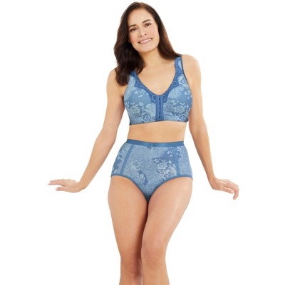 Catherines Front-Close Cotton Comfort Bra 50 C, Dusty Indigo Animal Patchwork