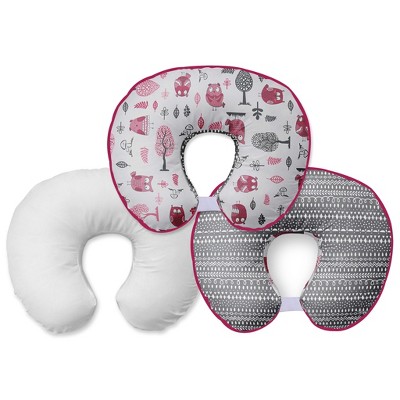Bacati - 3 pc Owls Pink/Gray Girls Hugster Feeding & Infant Support Nursing Pillow