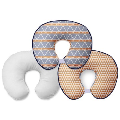 Bacati - 3 pc Liam Aztec Orange/Navy Large Triangles Muslin Hugster Feeding & Infant Support Nursing Pillow with 2 removable zippered covers