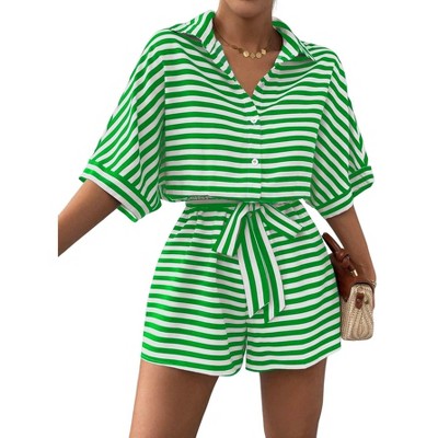 maison Jules Womens Striped Romper Jumpsuit