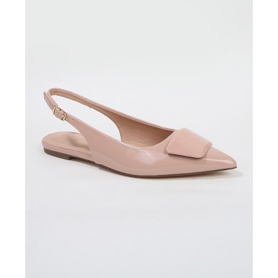 Berness Women's Blanca Patent Slingback Flats with Geometric Vamp Accent