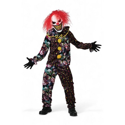 HalloweenCostumes.com Kids Devil Halloween Costume | Red Malevolent Demon Outfit, Scary Printed Jumpsuit with Wings and Horned Mask