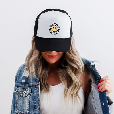 Simply Sage Market Loved Mama Smiley Face Foam Trucker Hat - Adult - Brown Tan