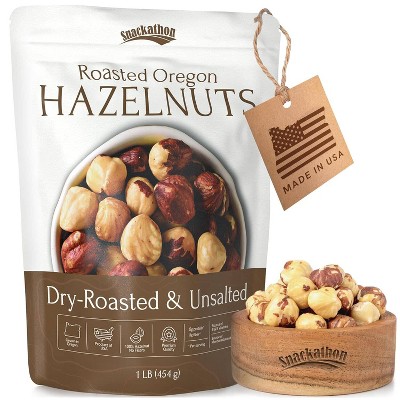 Snackathon Oregon Hazelnuts, Dry Roasted & Unsalted, 1 lb Resealable Pouch