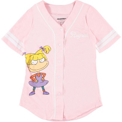 Ladies Nickelodeon 90's Fashion Shirt - Rugrats, Angelica and Chuckie Mesh Baseball Jersey (Light Pink, Large)