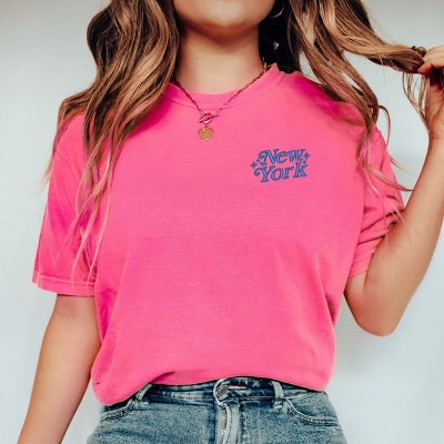 Simply Sage Market New York City Arched 78 Puff Print Garment Dyed Tee - XL - Neon Pink