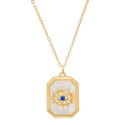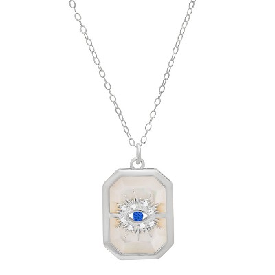 Sterling Silver Mother Of Pearl Evil Eye Medallion Pendant