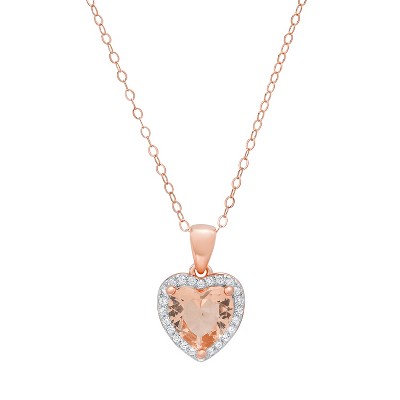 14K Rose Gold Over Silver Heart-cut Morganite CZ Halo Pendant