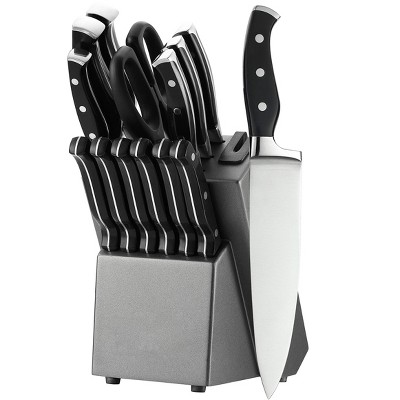 Itopfox 15-Piece Kitchen Knife Set with Block, Self-Sharpening, Dishwasher Safe, Anti-Slip Handle, Black