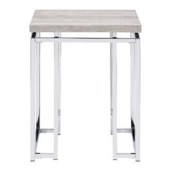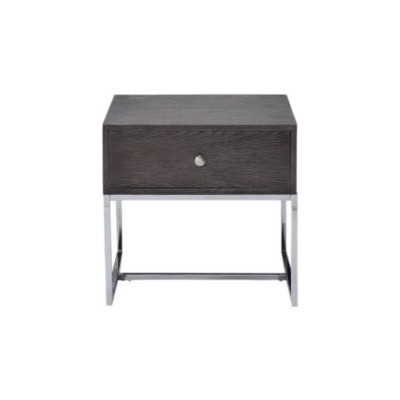 HomeRoots 22" Chrome And Gray Oak Manufactured Wood Rectangular End Table With Drawer