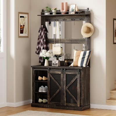- wood hook rack with mirror