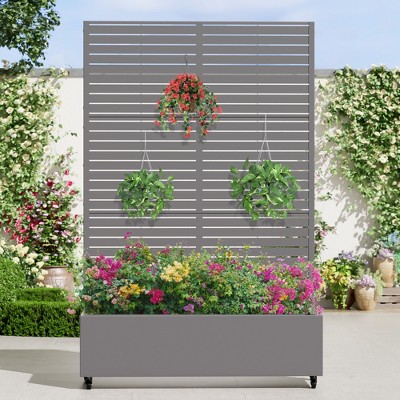 72"H Black Metal Planter Box with Trellis Privacy Screen for Café Patio,Garden & Balconies