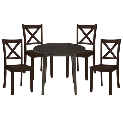 ROME + OAK Drop Leaf Table with Set of 4 X-Back Chairs, Wooden Dining Set, Brown