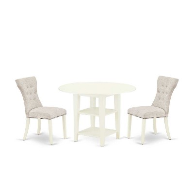 HomeStock 3-Piece Linen White Finish Round Solid Wood Top with Dropleaf Dining Table Set