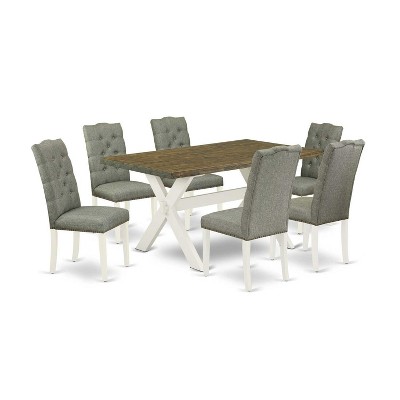 HomeStock 7-Piece Natural Oak Finish Solid Wood Top Dining Table with 6 Parson-Chairs