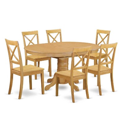 7-Piece Natural Oak Finish Solid Wood Top Dining Table with 6-Chairs with
