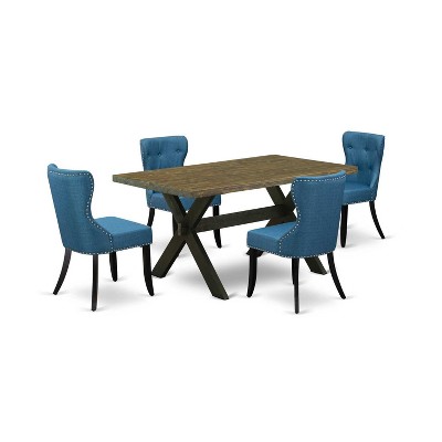 HomeStock 5-Piece Natural Oak Finish Solid Wood Top Dining Table with 4 Parson Chair