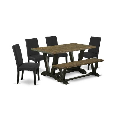 6-Piece Natural Oak Finish Solid Wood Top dining Table with 1-Bench and 4-Chairs with