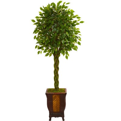 Nearly Natural 6-ft Braided Ficus Artificial Tree in Decorative Planter