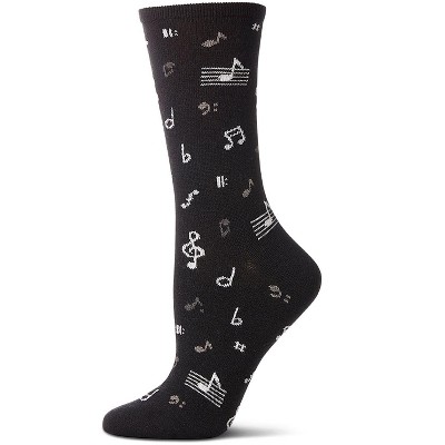 Memoi Women's "Musical Notes" Cashmere Blend Novelty Crew Sock Black 9-11